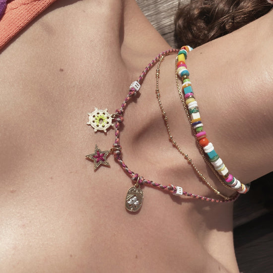 Collectionnez nos grigris magiques avec ce cordon multi-médailles, et personnalisez-le avec vos 2 initiales.