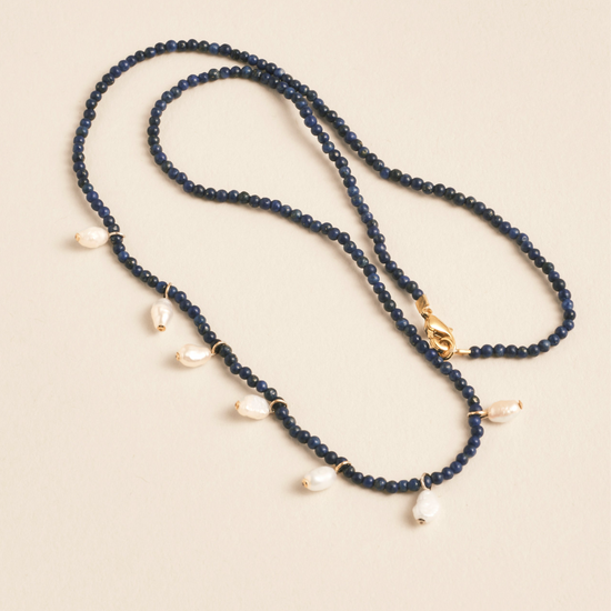 Découvrez notre collier IRIS et en lapis lazuli et perles d'eau douce.
