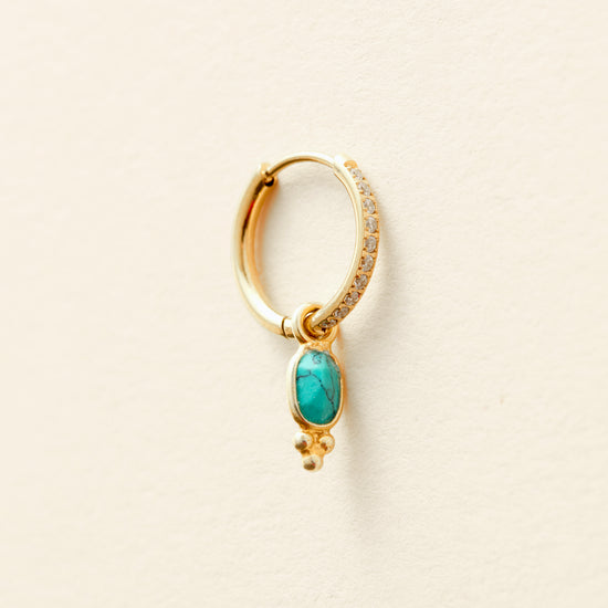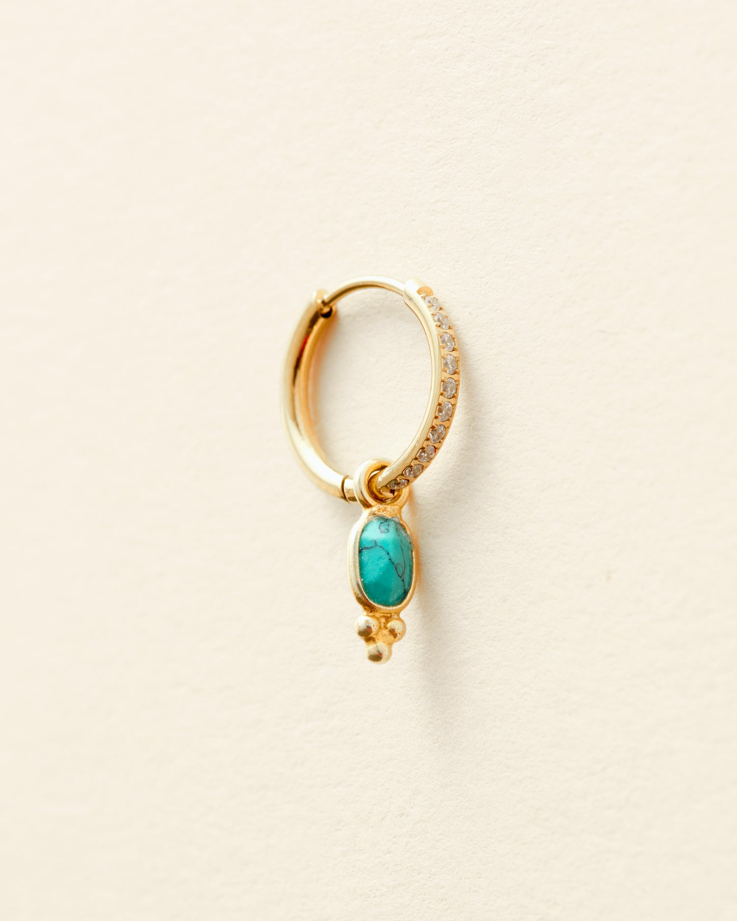Notre créole VERIA est pavée de zircon et elle est agrémentée d'un mini pendentif en turquoise naturelle.