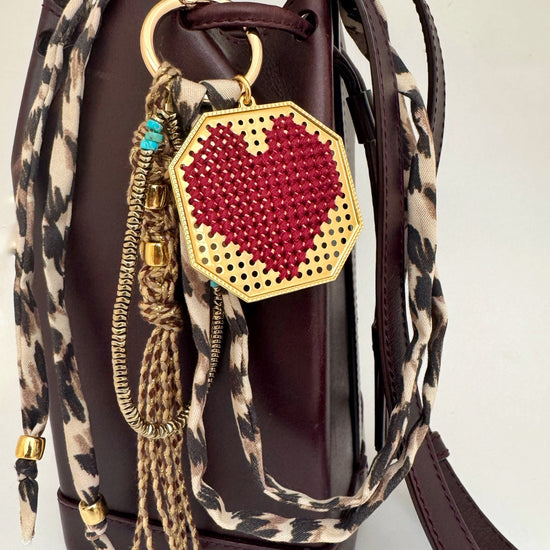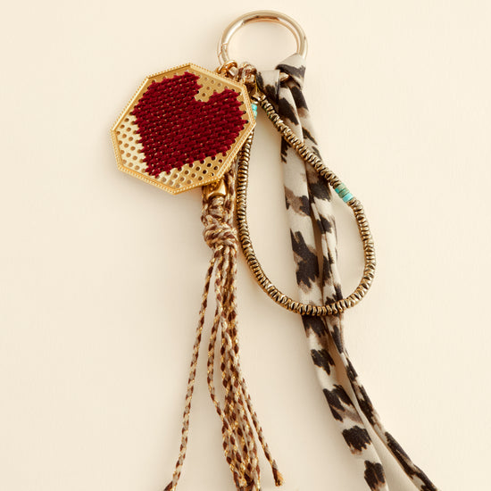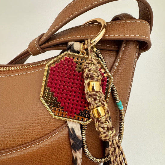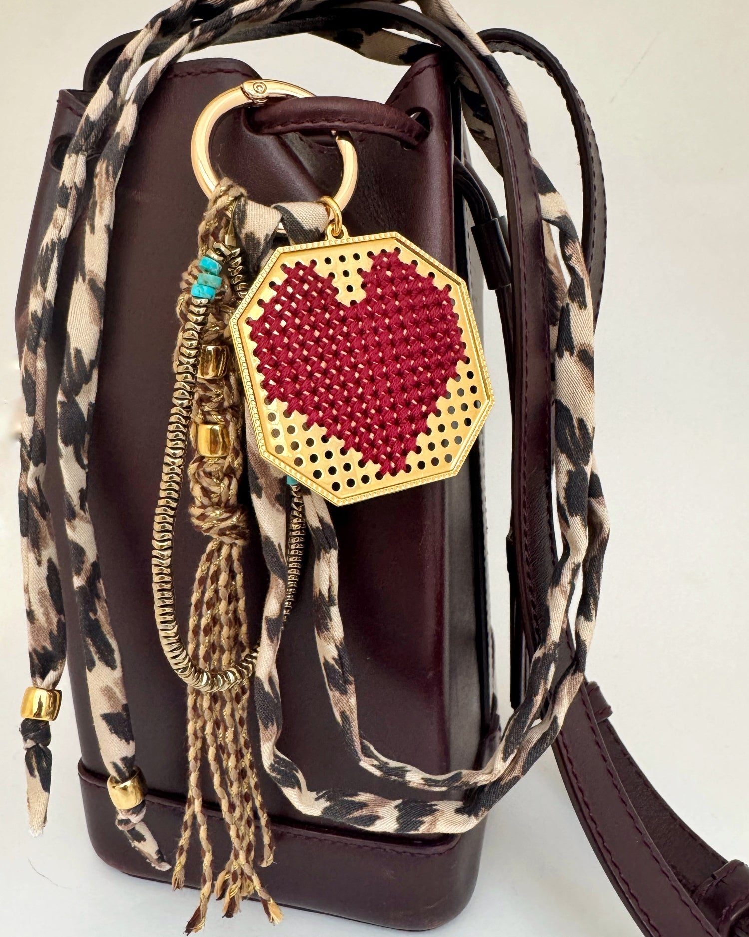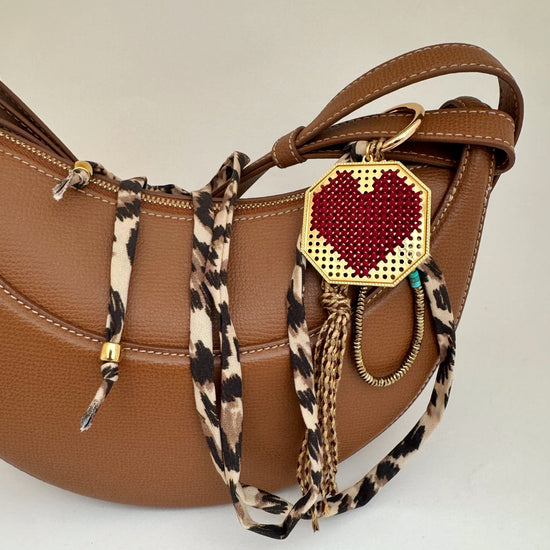 Le grigri ATI se porte sur votre sac à main, en porte-clés ou même en collier grâce au biais coloré à nouer.